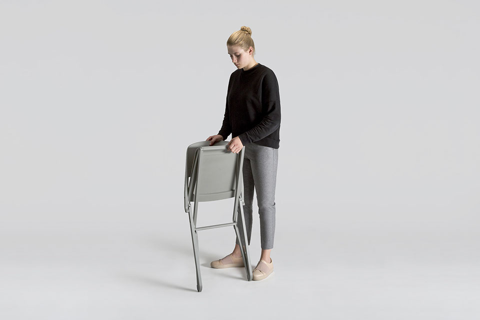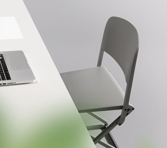 offering an enormous variety of sitting positions in one continuous motion. DFC encourages the body’s natural need to move freely by adapting to any posture solely by weight displacement. The lightweight chair folds easily – reducing the required space to a minimum and enabling quick transport and efficient storage. As a result DFC functions as a highly adaptable chair that brings a sense of flexibility and spontaneity into contemporary environments.