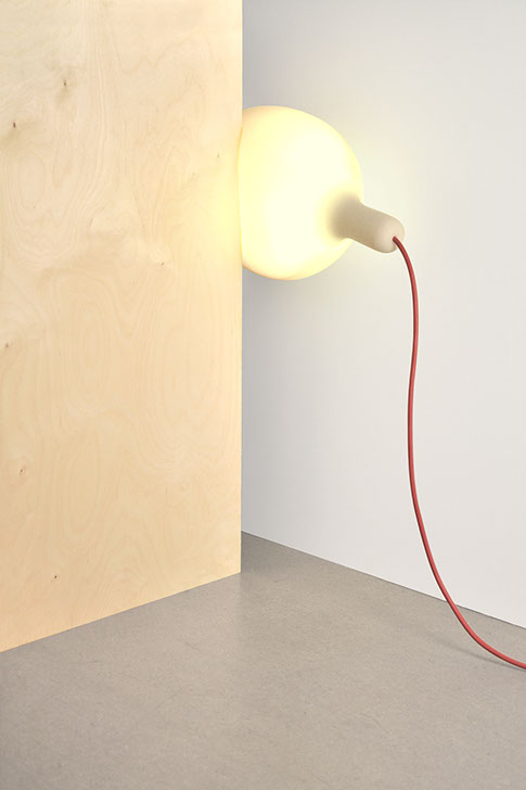 Due to its unusual material properties and ductility, it functions as a crevice filling lamp that can be placed between two objects or an object and a wall.