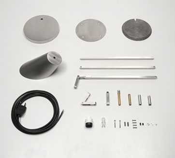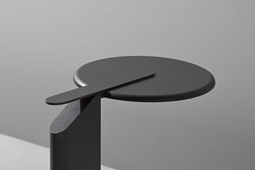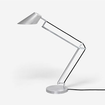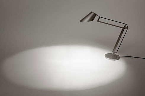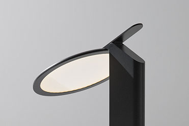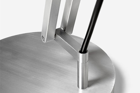 The aluminium body contains all electronic components like the transformer in order to keep the power plug clean and the overall appearance subtle. a sturdy posture while showing a visible contrast to the delicate shade that is seemingly balancing on an angular top.